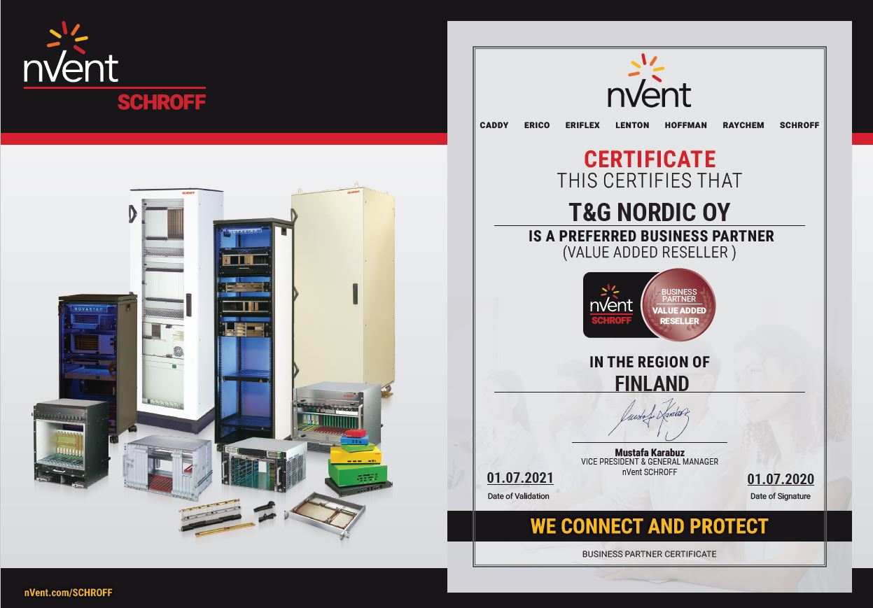 Yhteistyökumppanimme nVent Schroff palkitsi T&G Nordic Oy:n vuoden 2024 kasvajana!