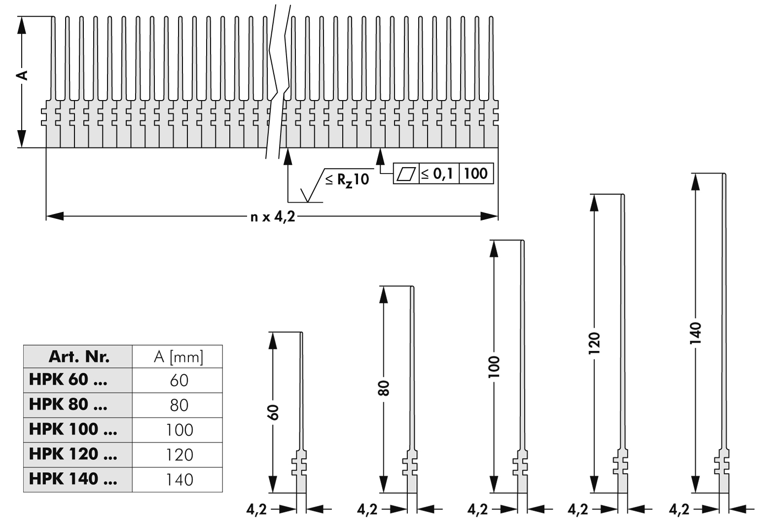 Profiili 6,35 mm (0,250") x 6,26 mm (0,270"). Paino 1,21 g/cm (0,109 unssia/"). Pituus 71,12 mm (2,8") - 325,12 mm (12,80"), 12,7 mm (0,5") askelin. Joustavat asennusvaihtoehdot. Keskimääräinen puristusvoima 68 N-cm (6"-lbs) vääntömomentilla 301 kg (636 lbs). Ruuvikiinnitys. Minimilaajeneminen 8,26 mm (0,325"). Saatavana mustaksi eloksoituna tai kemiallisella nikkelöinnillä. Soveltuu kylmäseinäsovelluksiin.
